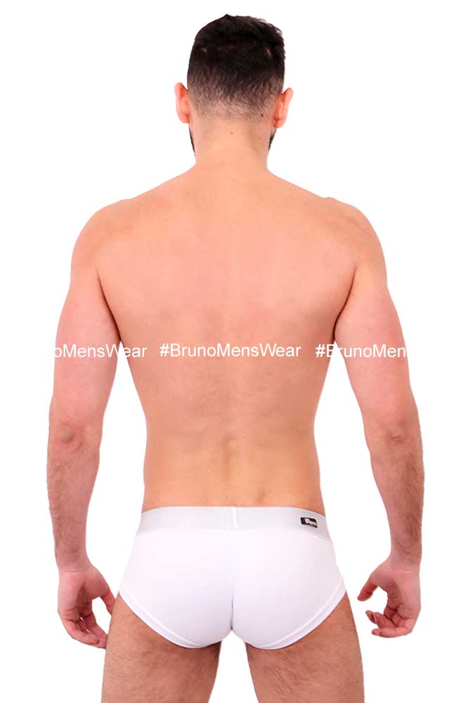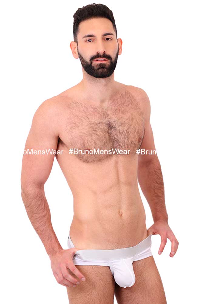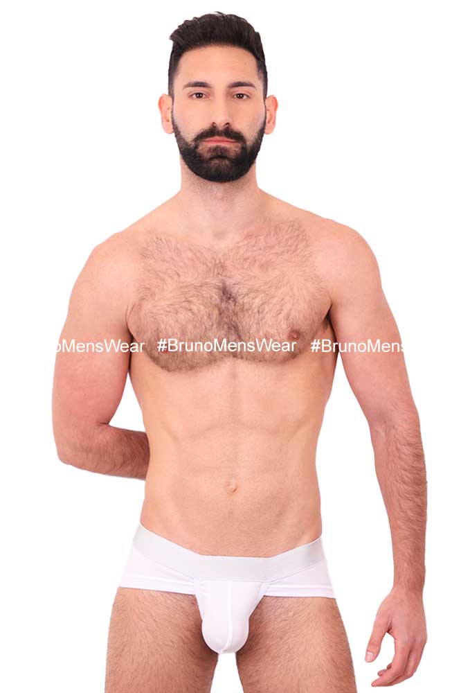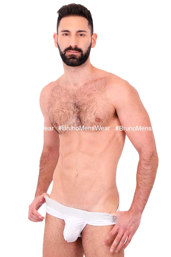 Confeccionado en tela licra “Seda-Algodón” color Blanco, con elástico color “plata” en cintura; con detalle “HIGHLIGHTER BULGE by BrunoMensWear”. Corte: Bikini Bulge. Composición de la tela: 95% algodón, 5% elastano.