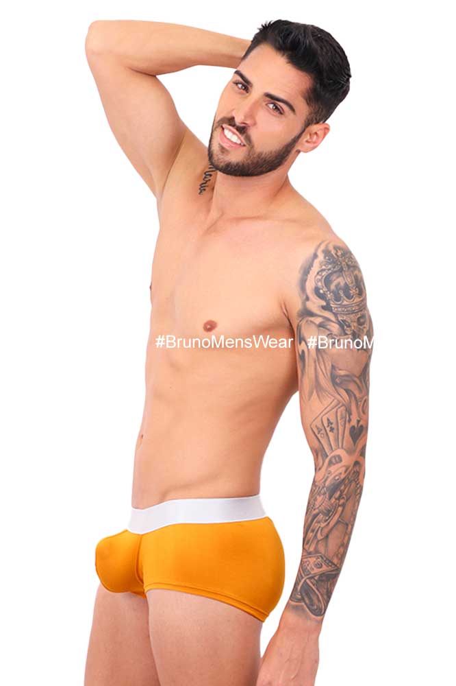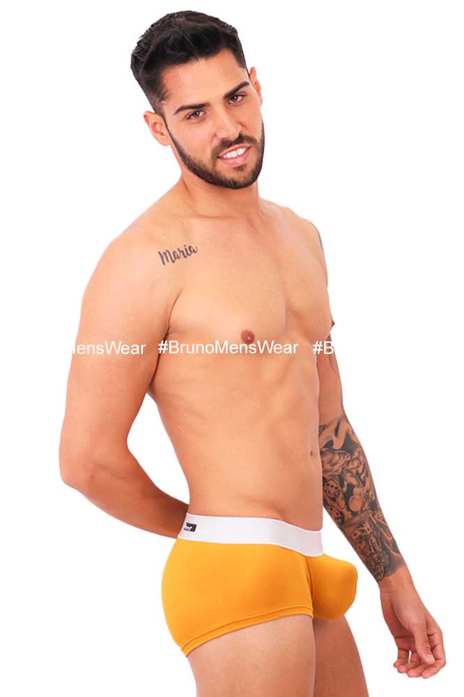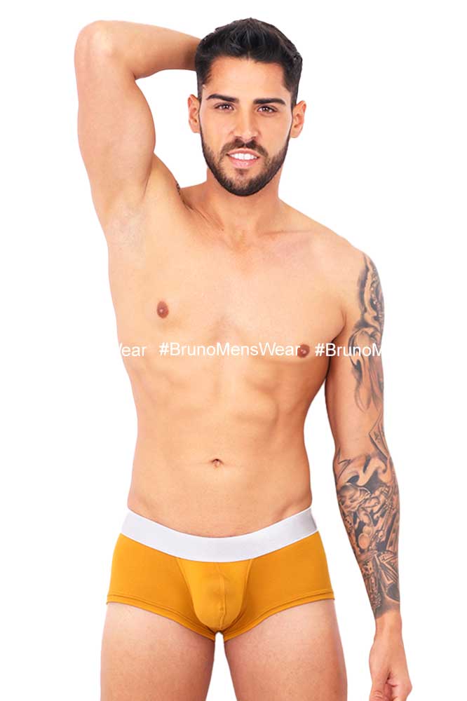 Made of “Silk-Cotton” mustard colored lycra fabric, with “silver” elastic at the waist; with “HIGHLIGHTER BULGE by BrunoMensWear” detail. Cut: Boxer Medium Bulge. Fabric composition: 95% cotton, 5% elastane.