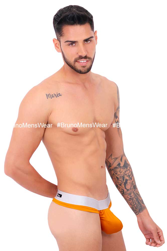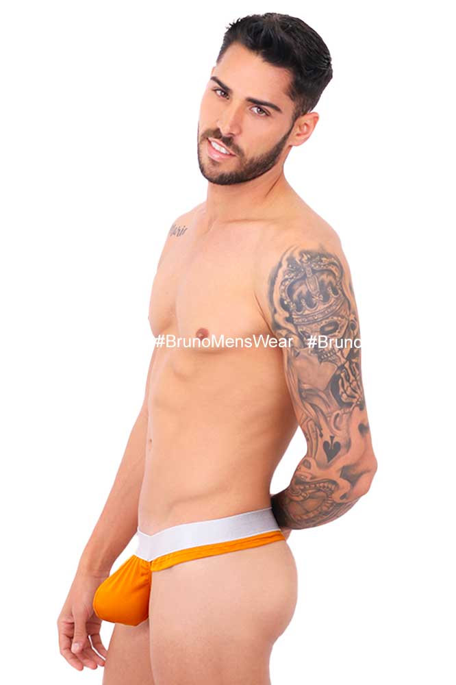 Made of “Silk-Cotton” mustard colored lycra fabric, with “silver” elastic at the waist; with “HIGHLIGHTER BULGE by BrunoMensWear” detail. Cut: Thong Bulge. Fabric composition: 95% cotton, 5% elastane.