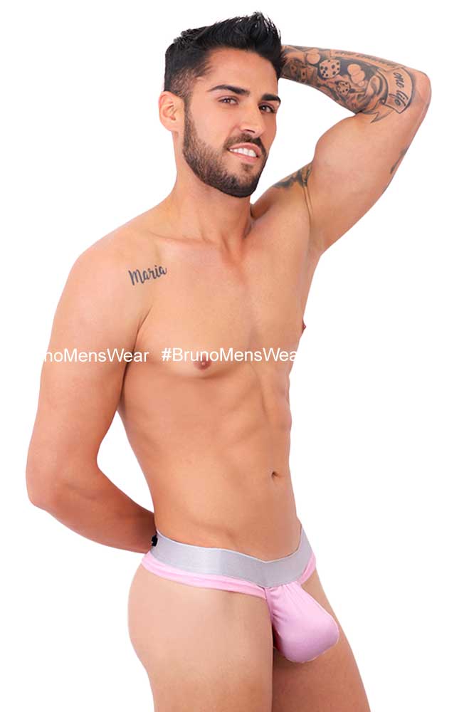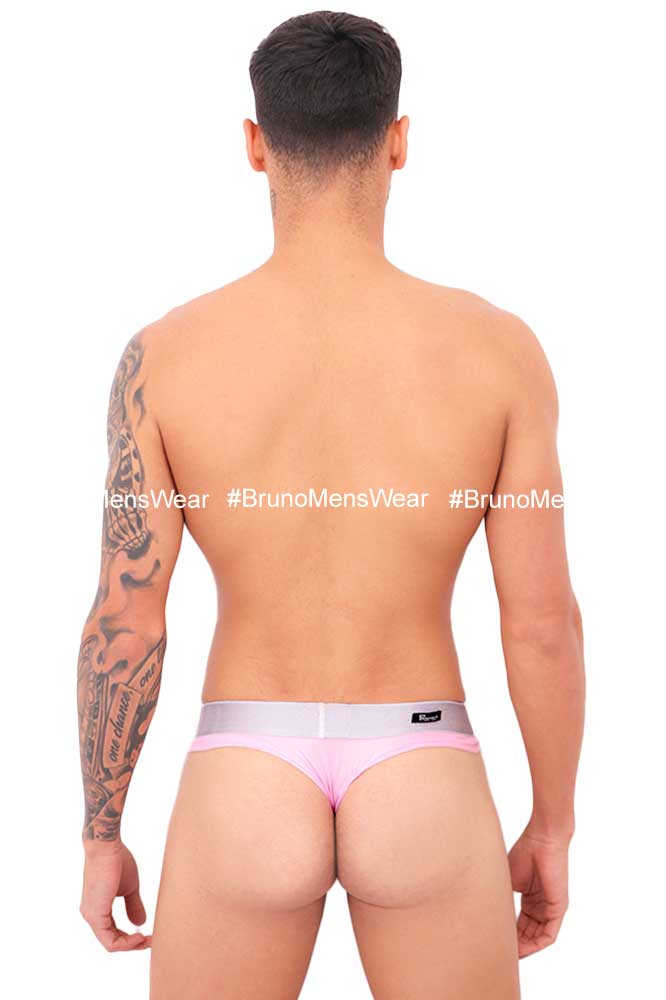 Confeccionado en tela licra “Seda-Algodón” color Palo de Rosa – tono pastel, con elástico color “plata” en cintura; con detalle “HIGHLIGHTER BULGE by BrunoMensWear”. Corte: Thong Bulge. Composición de la tela: 95% algodón, 5% elastano.