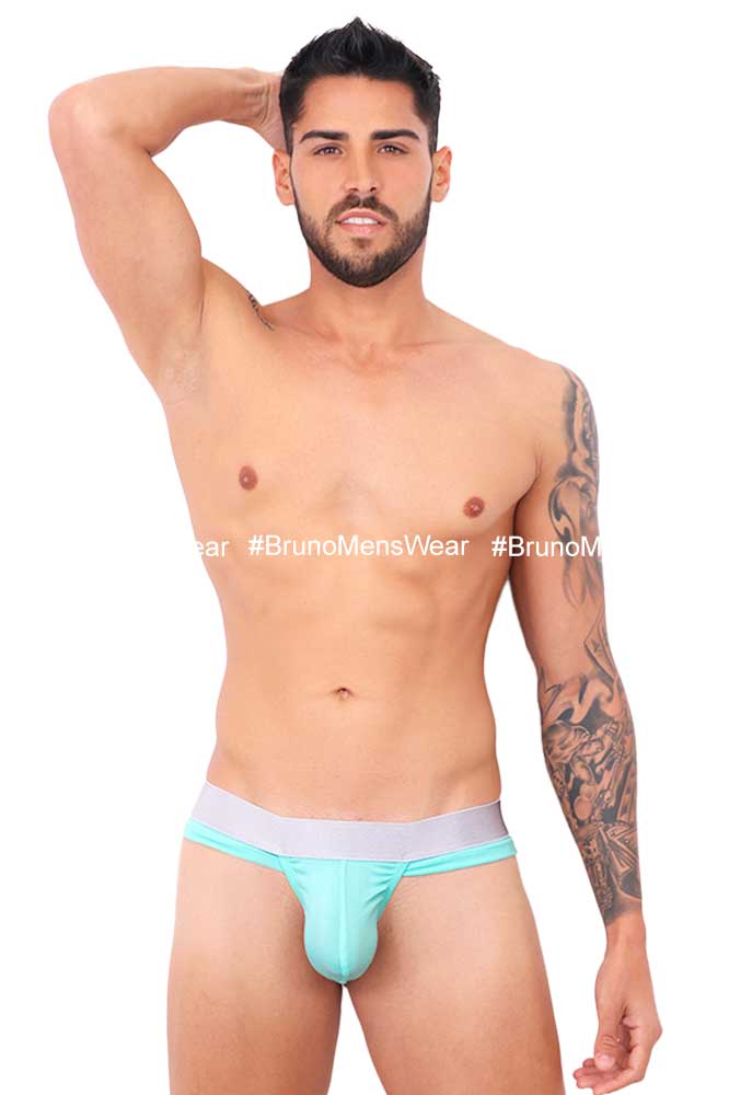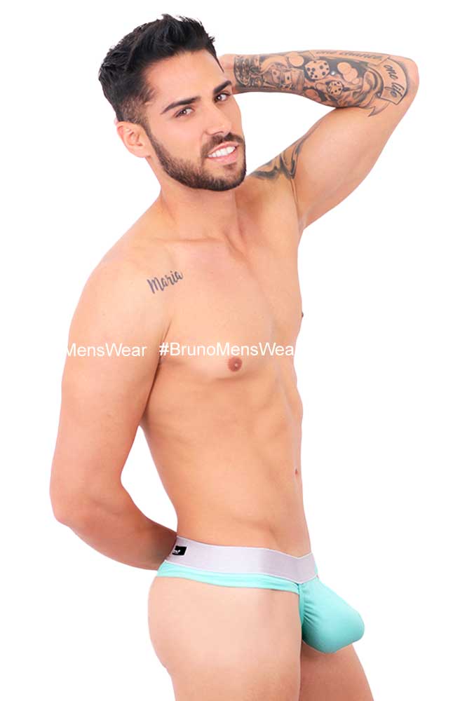 Made in “Silk-Cotton” lycra fabric in mint green – pastel tone, with “silver” elastic at waist; with “HIGHLIGHTER BULGE by BrunoMensWear” detail. Cut: Thong Bulge.fabric composition: 95% cotton, 5% elastane.