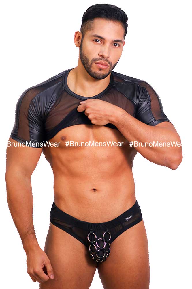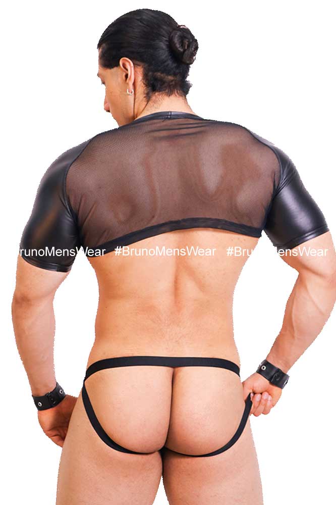 + Free ShippingConfeccionada en tela licra tipo “malla red” color negro, combinado en mangas, cuello y dobladillo en tela vinilpiel tono negro.