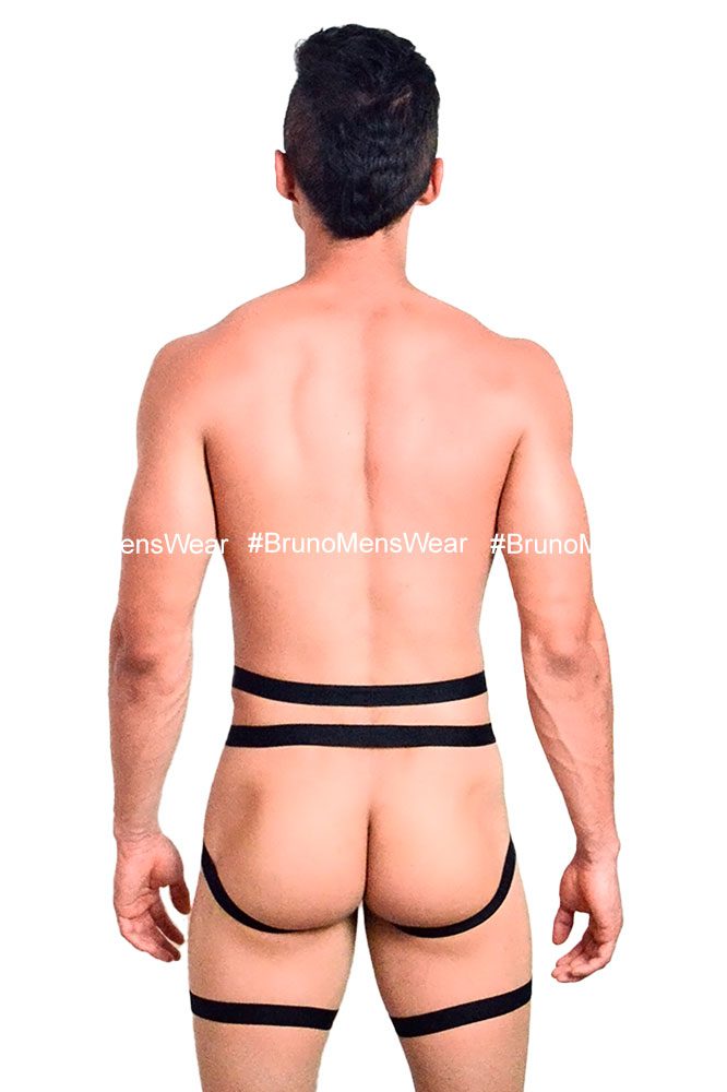 Confeccionado en licra SpandexPoliéster estampado rainbow en “bulge”, con “tirantes” de elástico afelpado color negro a la entre pierna y cintura con “detalle” de argollas de “acero metálico” al pubis.