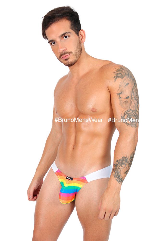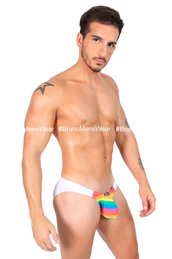 + Free ShippingMade of white “Nylon” lycra fabric, combined in “bulge” with “Polyester” lycra fabric with RAINBOW print and brand logo detail in “textile vinyl” on the back. Cut: Bikini Brief. Fabric composition: 82% Polyester, 18% Spandex.