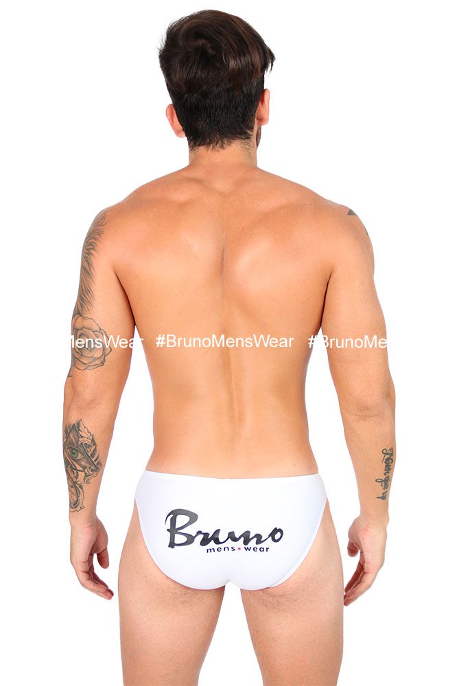 Made of white “Nylon” lycra fabric, combined in “bulge” with “Polyester” lycra fabric with RAINBOW print and brand logo detail in “textile vinyl” on the back.