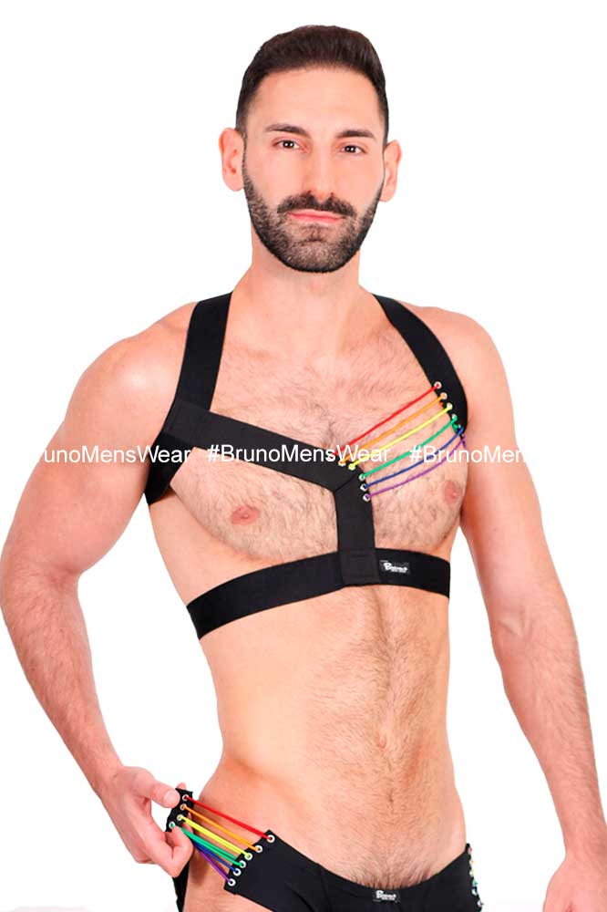 + Free ShippingMade in “wide elastic strap” in black with “detail” of circular elastic in “Pride” combination, on left side.