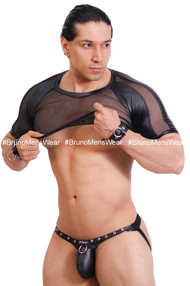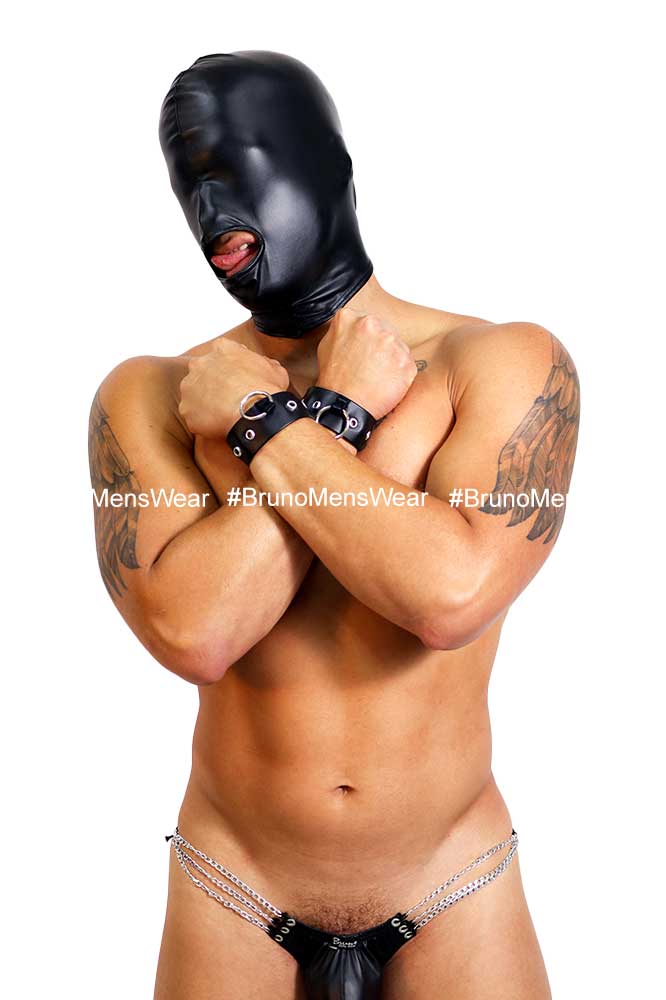 Made in elastic “lined” in black licra vinylskin fabric, with details of “eyelets and metallic ring”.