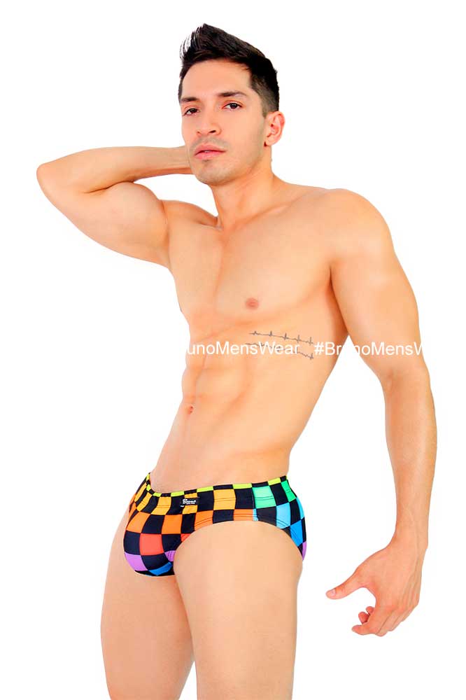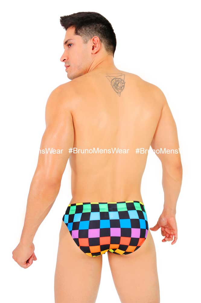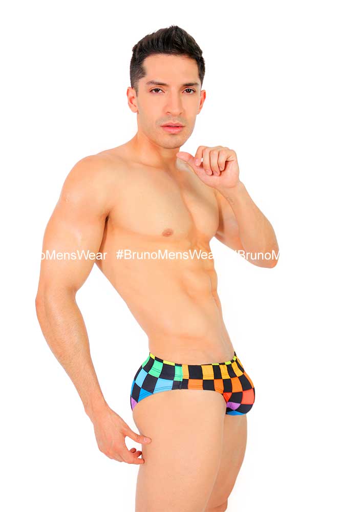 Confeccionado en tela licra “Poliéster” estampado PRIDE SQUARES, con detalle de “forro” en parte bulge.