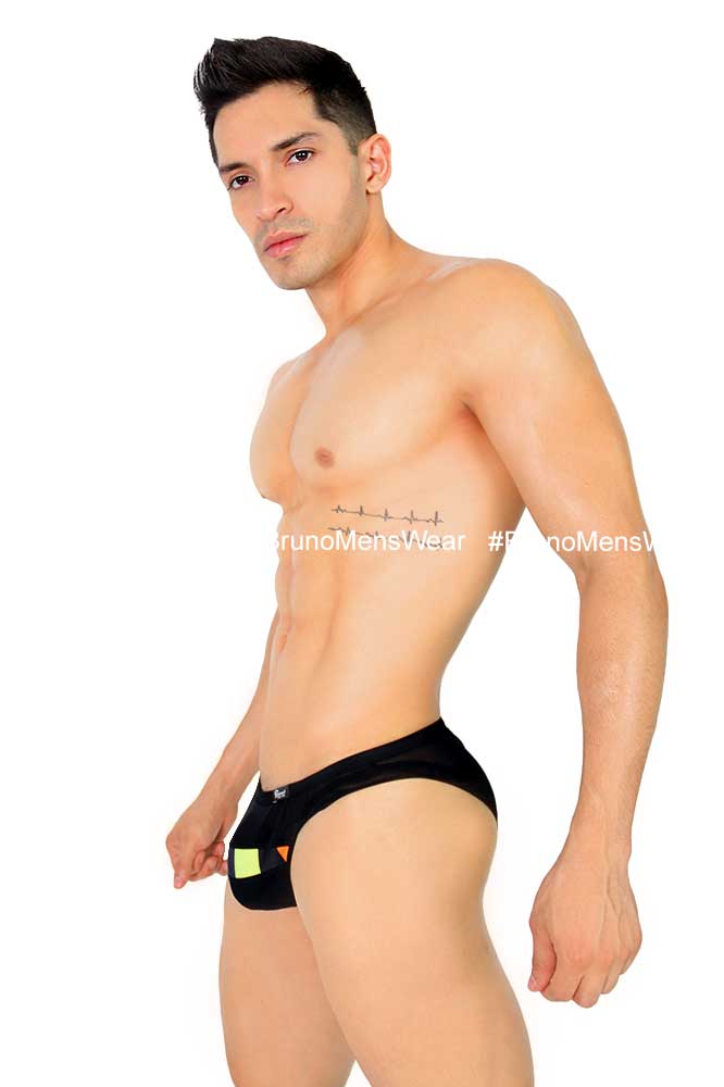 Confeccionado en tela licra “Mesh” color negro, con detalle de estampado PRIDE SQUARES en licra “Poliéster” en parte “frontal” combinado con elástico “forrado” tono negro en cintura.