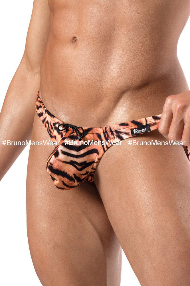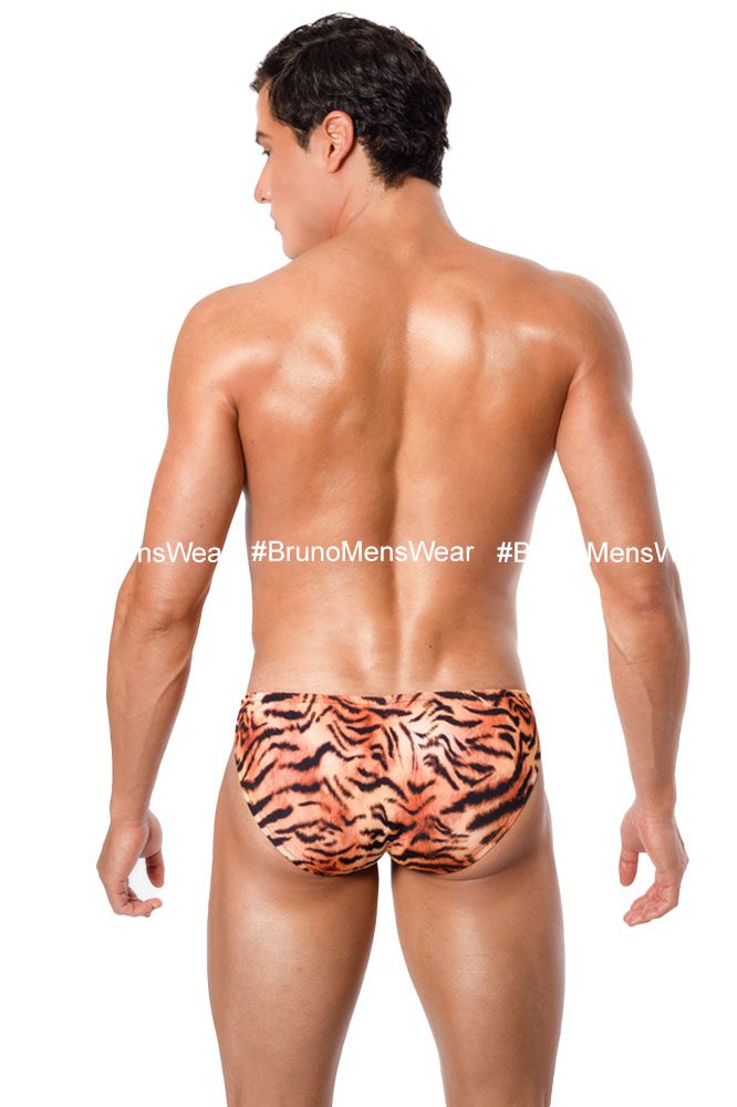 Made in lycra fabric “Polyester” TIGER print, with circular elastic waistband detail, black color and “lining” in bulge. Cut: Bikini Bulge. Fabric composition: 82% Polyester, 18% Spandex.