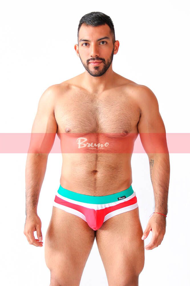 + Free ShippingConfeccionado en tela licra “Nylon” “combinado” en colores blanco y rojo con “detalle” de elástico “forrado” en cintura color verde bandera. Corte: Bikini Regula Brief.
